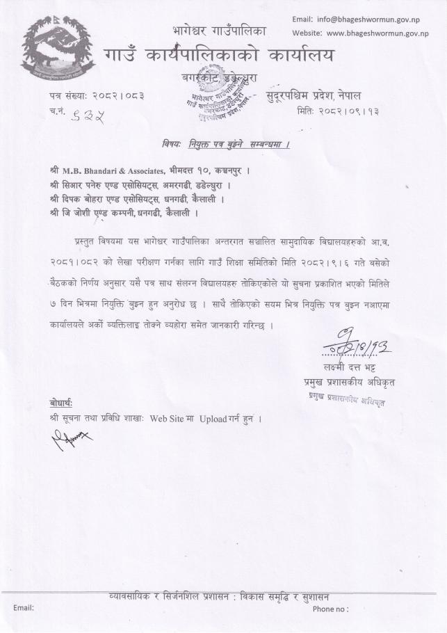 नियुुक्ती पत्र बुझ्ने सम्बन्धमा ।