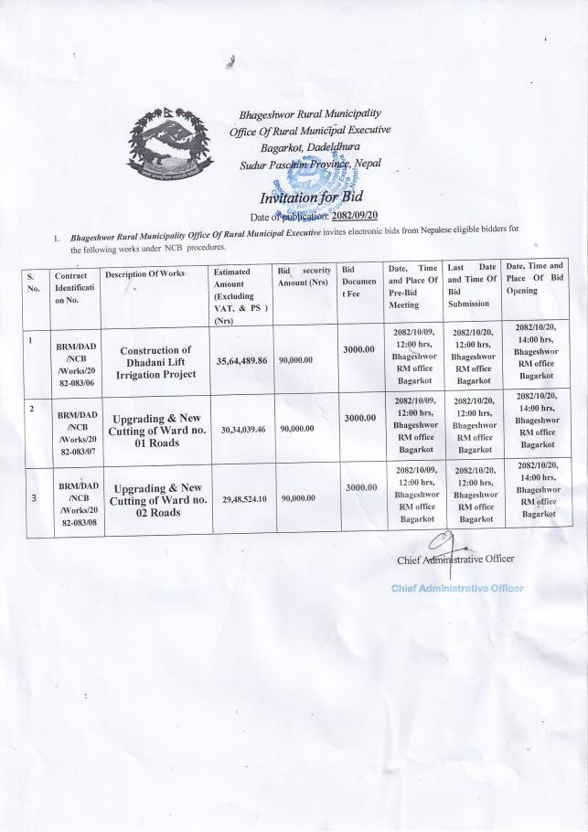 बोलपत्र आह्वान गरिएको बारे ।