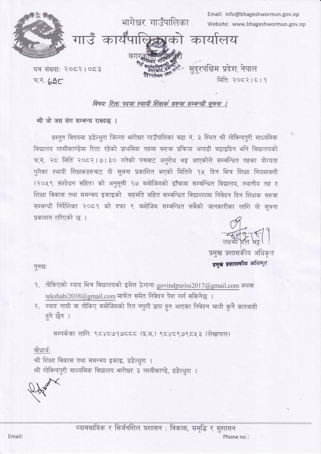 रिक्त पदमा स्थायी शिक्षक सरुवा सम्बन्धी सूचना ।