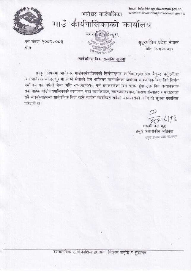 » सार्वजनिक विदा सम्वन्धि सूचना