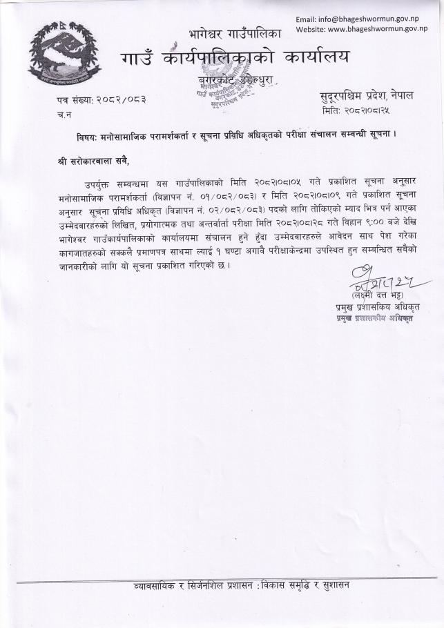 मनोसामाजिक परामर्शकर्ता र सूचना प्रविधि अधिकृतको परीक्षा संचालन सम्बन्धी सूचना ।