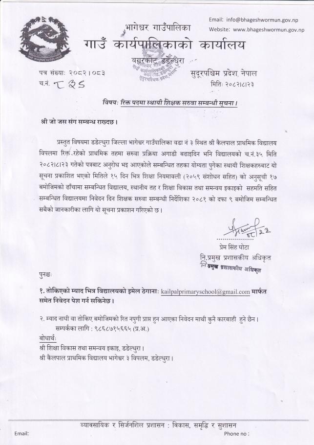 रिक्त पदमा स्थायी शिक्षक सरुवा सम्बन्धी सूचना ।